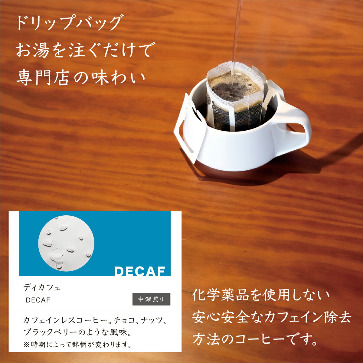 高品質なコーヒー豆を使用し、添加物も含まれない本格的なリキッドタイプのディカフェコーヒーと2種類のドリップパックのセットです。