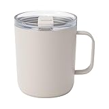 10. ふた付きでこぼれにくい「無印良品 目盛り付き 保温保冷 蓋付きマグカップ グレーベージュ」