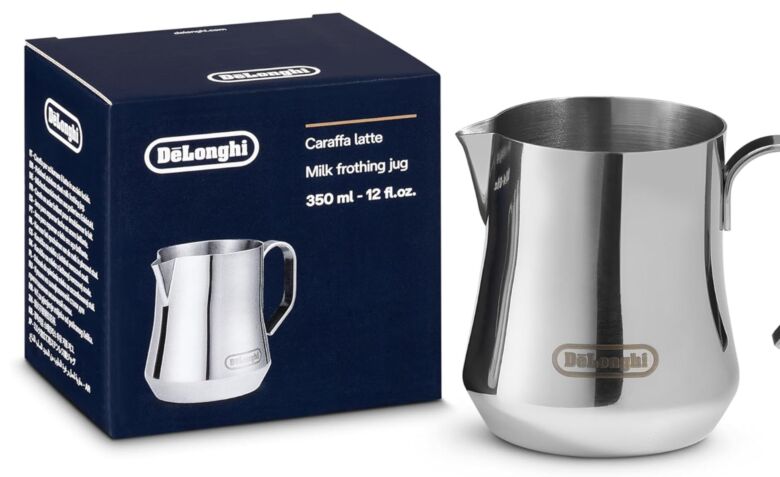 家庭用エスプレッソマシンとの相性を重視したい場合に選びやすいのが、「De’Longhi ミルクジャグ」です。