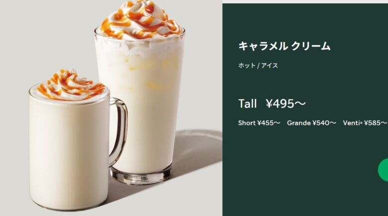 | 価格(税込) | ショート:460円〜 トール:500円〜 グランデ:545円〜 ベンティ:590円〜 |
