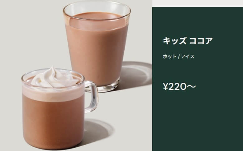 スターバックスには、子供でも安心して注文できる専用メニューがあります。