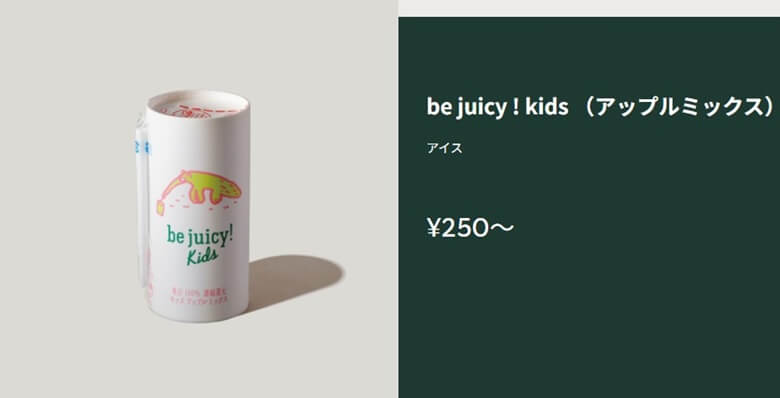 be juicy! kidsは、カゴメがスタバ用子供向けドリンクとして専用で開発した商品です。