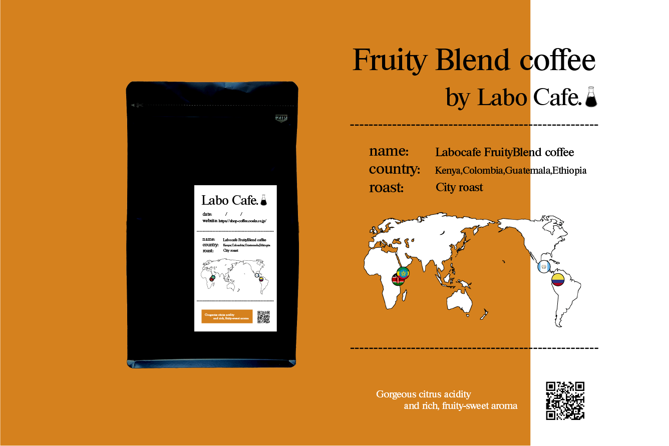 | 1位 | ラボカフェ フルーティーブレンド | 150g | コロンビア、ケニア、エチオピア、グアテマラ | シティロースト |